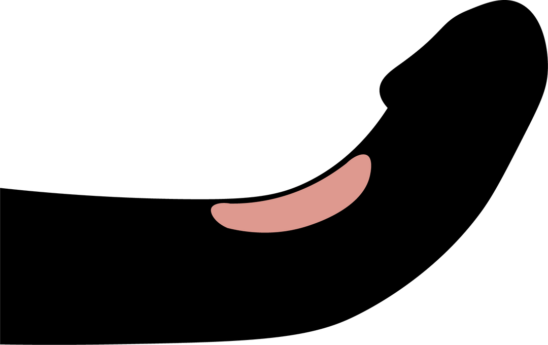The penile shape can be upward, downward, left, right, or a combination of any directions.