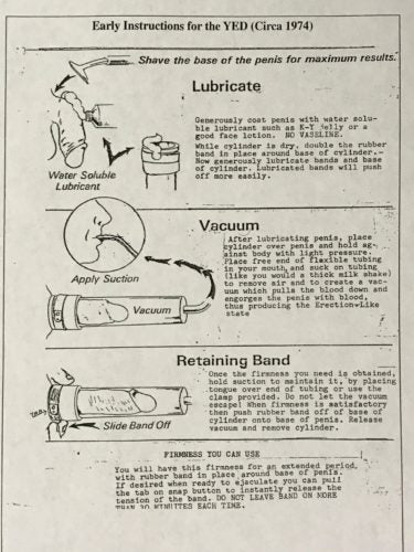In 1982, Geddings Osbon was granted the first FDA approval for a vacuum constriction device product. He called his product “Youth Equivalent Device” and this is a marketing flier promoted for his first device: